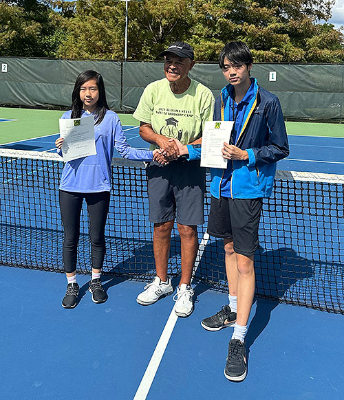 The James Lewis Education and Tennis Foundation Incorporated awarded a scholarship to Kaylyn Sun (left) and Kevin Sun (right). The award was presented by Rudy Lewis, board member and manager of the National Junior Tennis and Learning (NJTL) chapter. The presentation was done on Saturday, 10/11/25 at the George Ward Tennis Center. Kaylyn received a $300 scholarship and Kevin received a $500 scholarship. The Foundation has given over $56,000 in scholarships over the years.